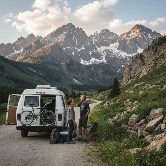 By the end of the first day, we had crossed into Colorado, moving through areas where the mountains grow taller, colder, and more layered. Forests thickened, the air sharpened, and snow still clung to shaded slopes even when the valleys below felt warm enough for open windows.