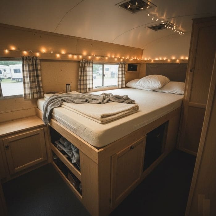 People love to spend money on cute upgrades before they buy the boring stuff. We did the opposite. We bought the things that keep you safe, clean enough to feel human, and comfortable enough to avoid hating the lifestyle two weeks in.