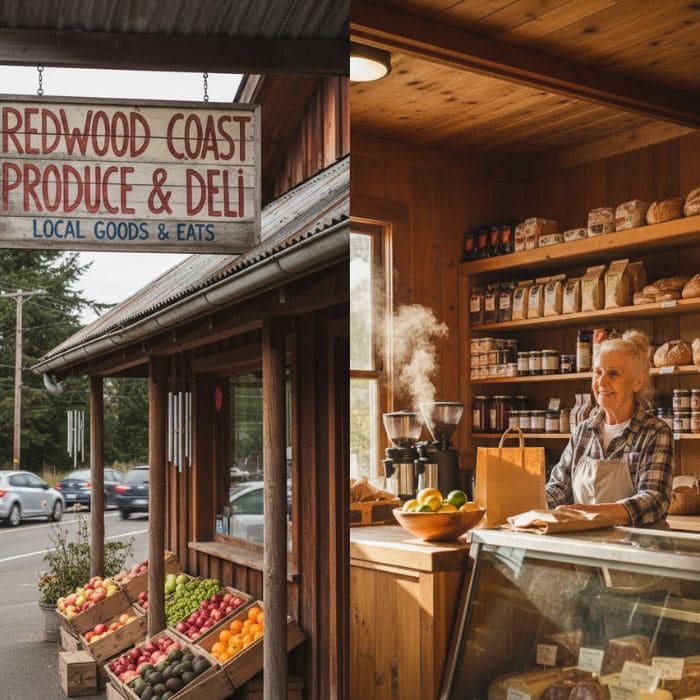 We pulled into a small roadside place called Redwood Coast Produce & Deli, one of those local markets that looks modest from the outside but always surprises you once you step in.