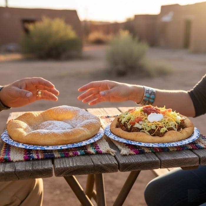 The fry bread came warm and golden, crisp at the edges and soft in the middle, and it held heat in your hands for a moment, which felt like comfort you could actually hold.