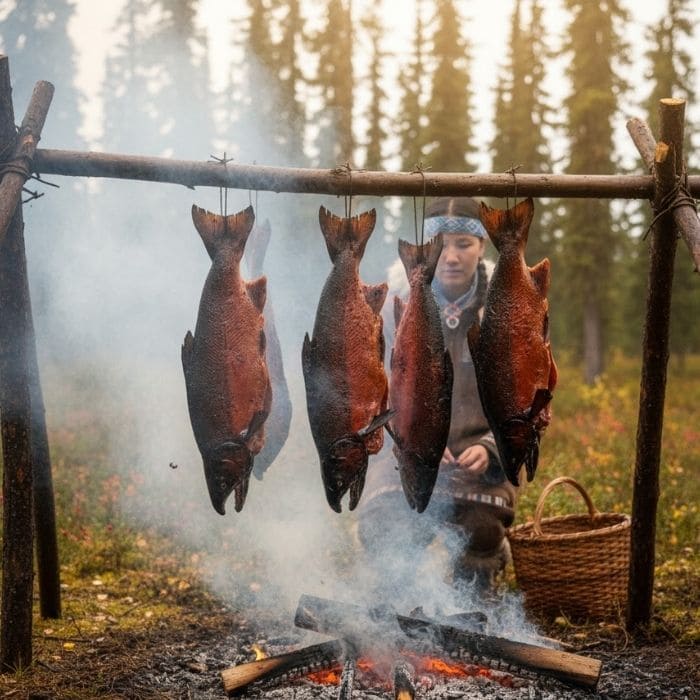 They showed us preservation methods that have been used in cold regions for a long time, especially drying and smoking, and the concept is simple even if the skill takes years: you reduce moisture, you protect food from spoilage, and you use airflow and controlled smoke as preservation tools rather than flavor alone.