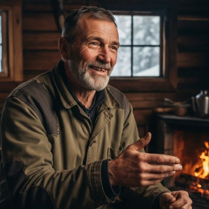 We met Eli Kaskinen. Eli was in his late fifties, lean in that weather-built way, with a gray beard trimmed short and hands that looked permanently familiar with rope, wood, and cold air, and he wore a faded canvas jacket that had been repaired more than once, the kind of jacket you don’t replace because it already knows your life.