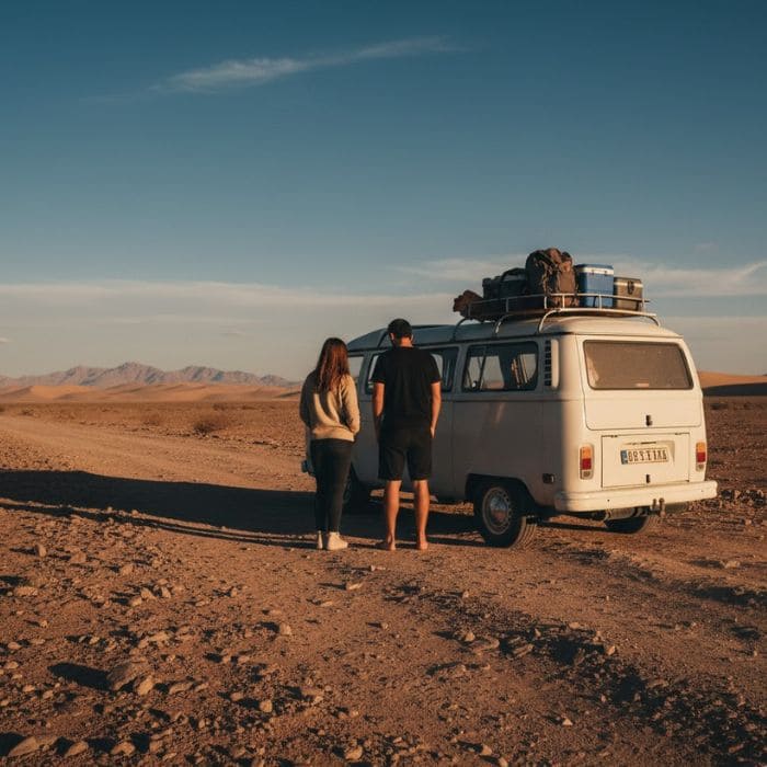 One moment we were cruising and talking about constellations, and the next I was pulled over, hazard lights blinking, heat rising off the pavement, with Amanda looking at me like, “Okay, Mr. Adventurous, what now?”