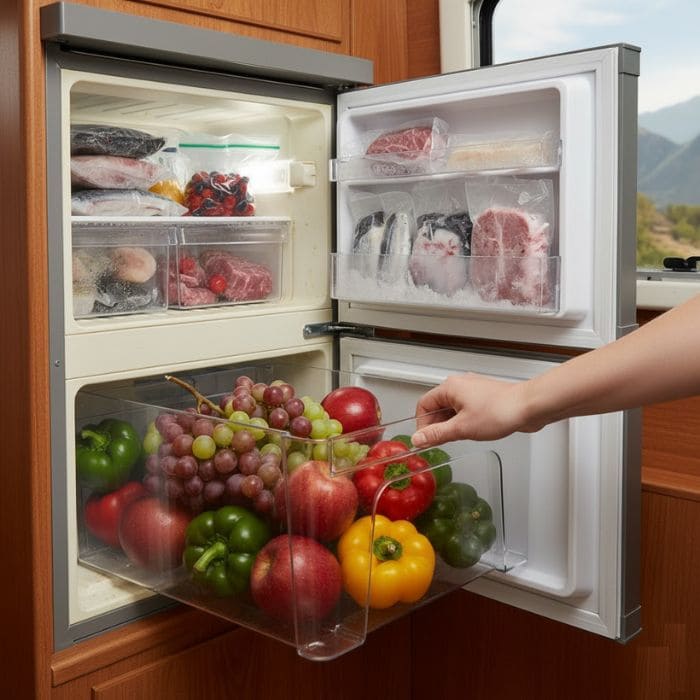 Alongside that, we keep fresh food, but only the kind that survives movement and time.