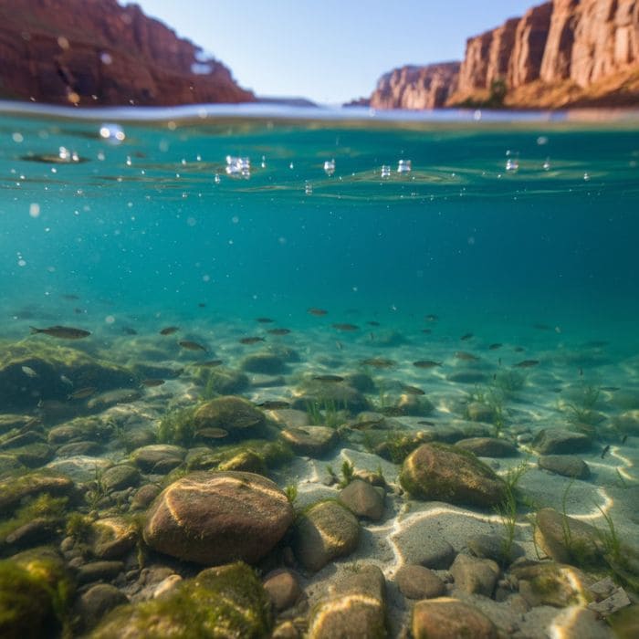 The water wasn’t just blue. It was that milky turquoise that looks like it belongs in the Caribbean, except it was surrounded by red canyon walls and pale sand. In some shallow sections, it looked almost glassy and transparent, and in deeper sections it turned richer and brighter, like liquid stone.